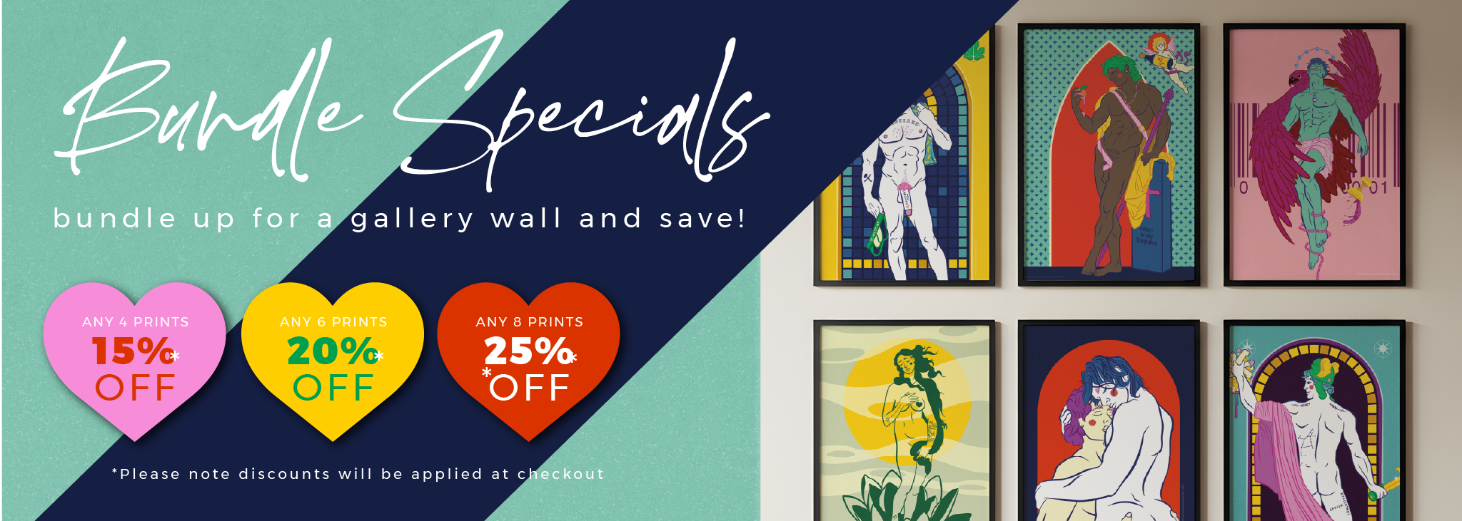 Darling Boys is a bold celebration of queer expression - sexy, funny, and a little dangerous. From fine art prints to filthy little stickers, we’re here to turn queer joy into something you can hang, gift, or slap on a mirror.