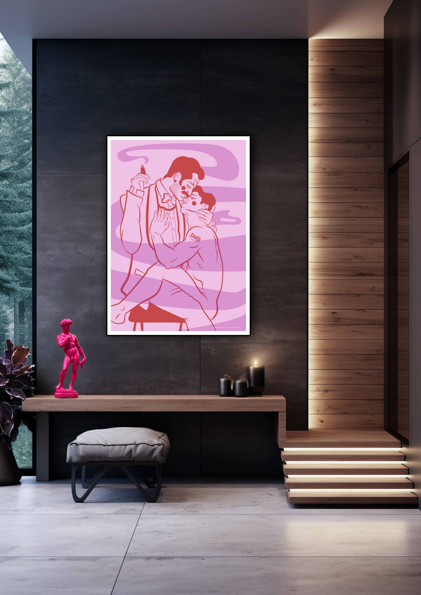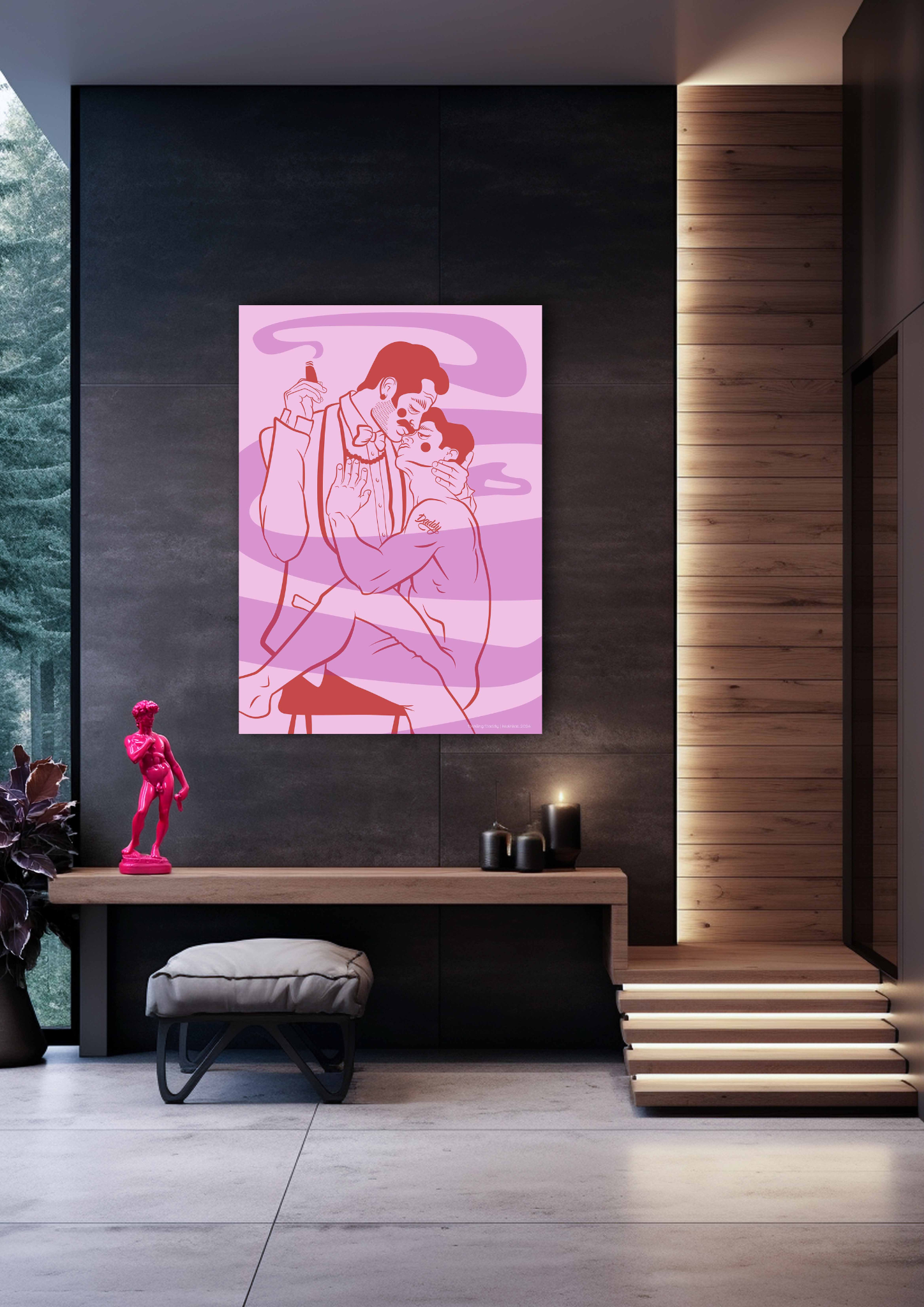 Printed in high resolution with UV cured inks on glossy acrylic, this piece is pure visual indulgence. Every line pops, every gaze smoulders, and it all comes ready to hang in an A1 custom frame worthy of Daddy’s wall.