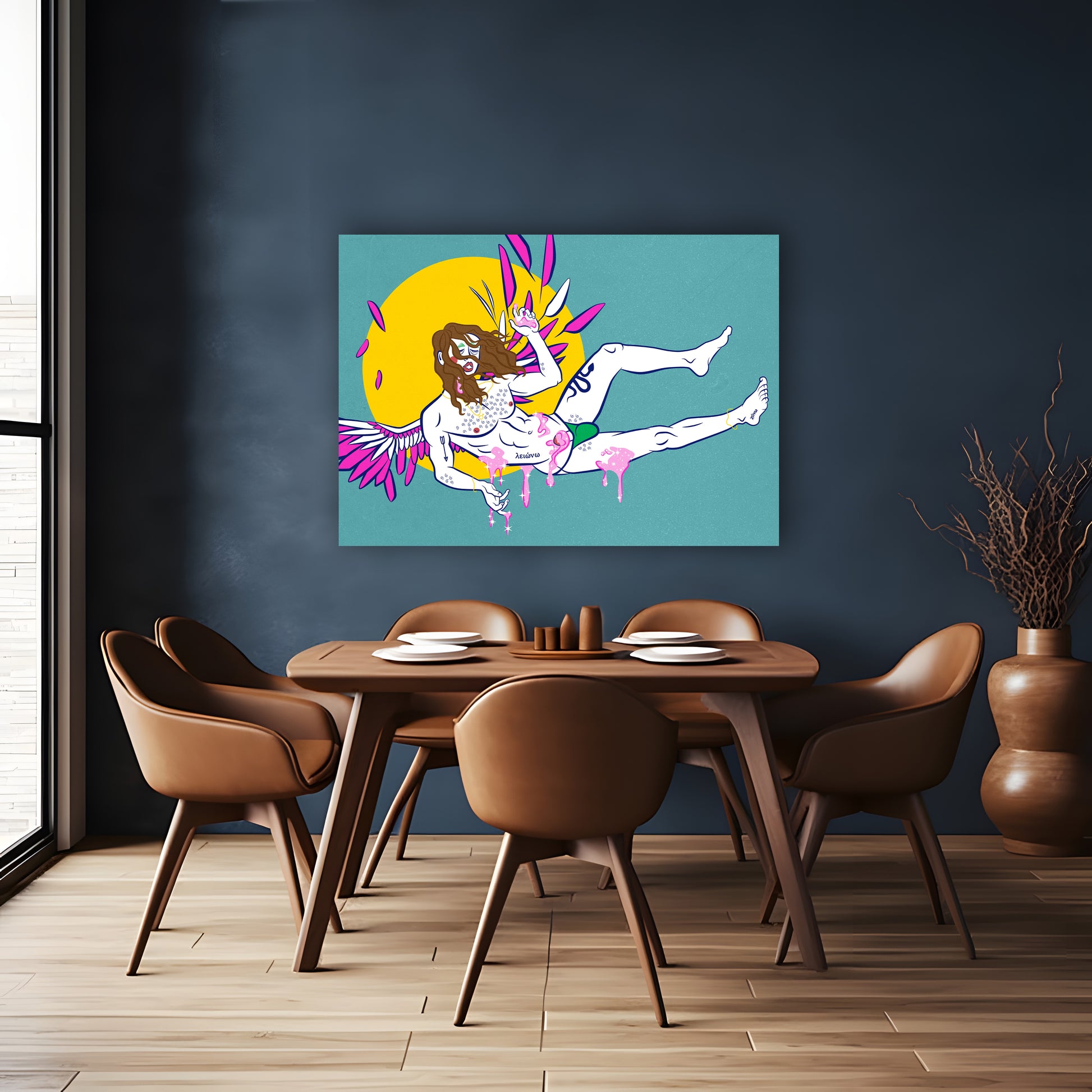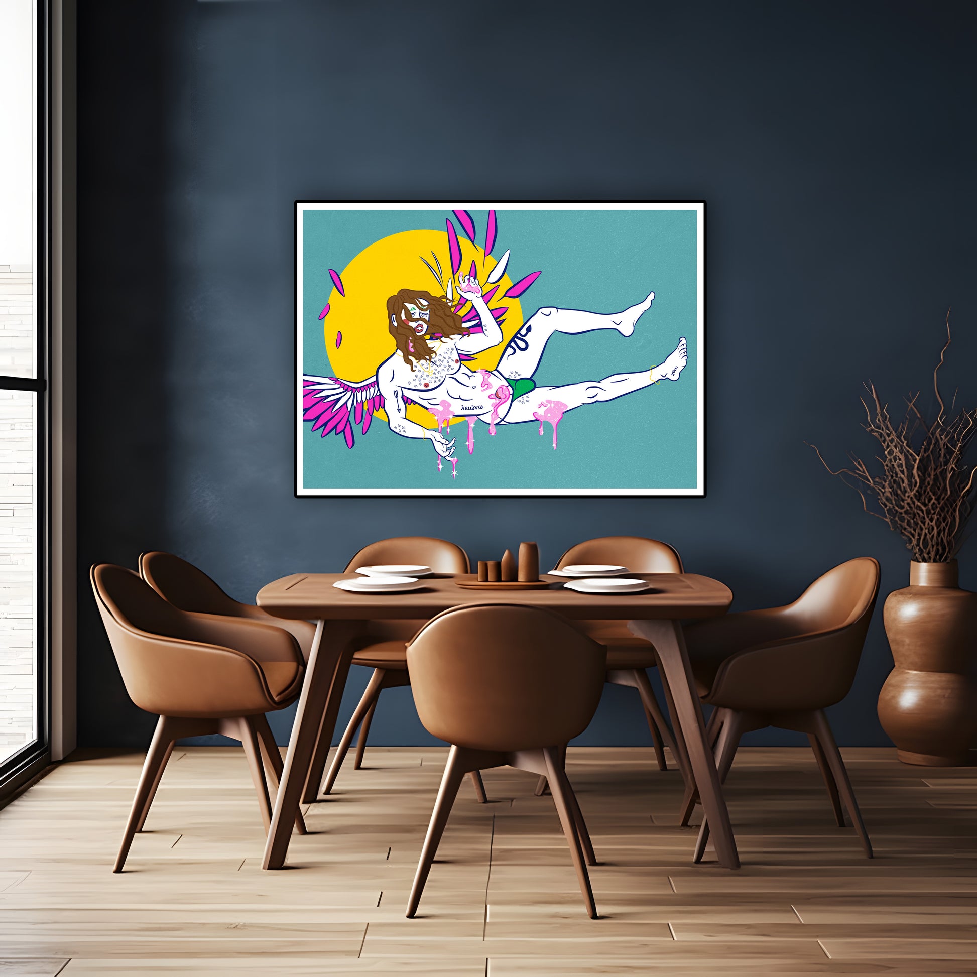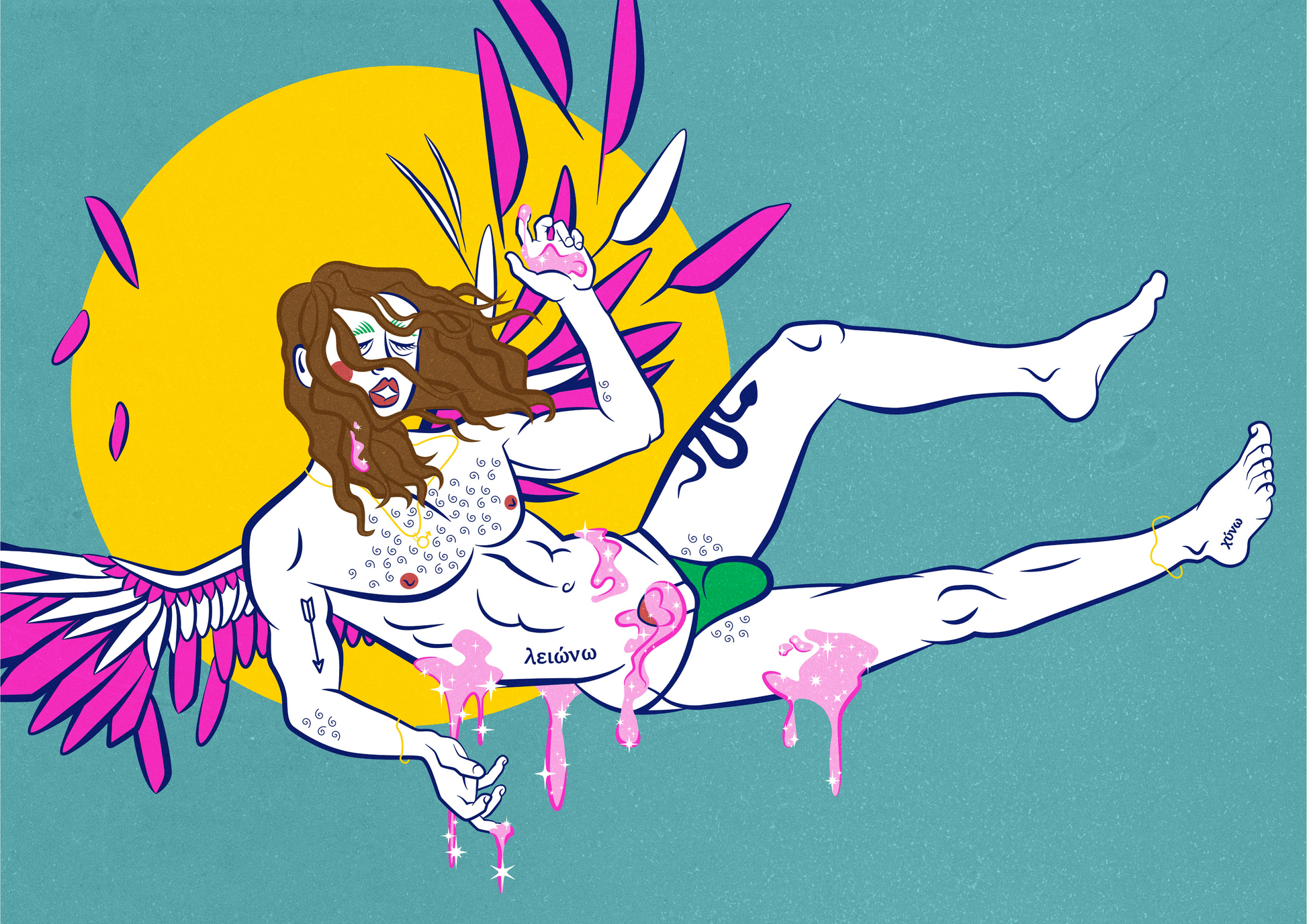 This fallen angel took the wax wings off real fast and leaned all the way into fabulous. The Greek tattoos flip from “I’m melting” to “I’m c*mming”, paying homage to young Icarus falling from the height of pleasure, finally sinking into a puddle of satisfaction. Dripping in pink, serving celestial chaos, and floating in that “I made a mess and I liked it” energy, Darling Icarus is a divine disaster you’ll want front and centre.