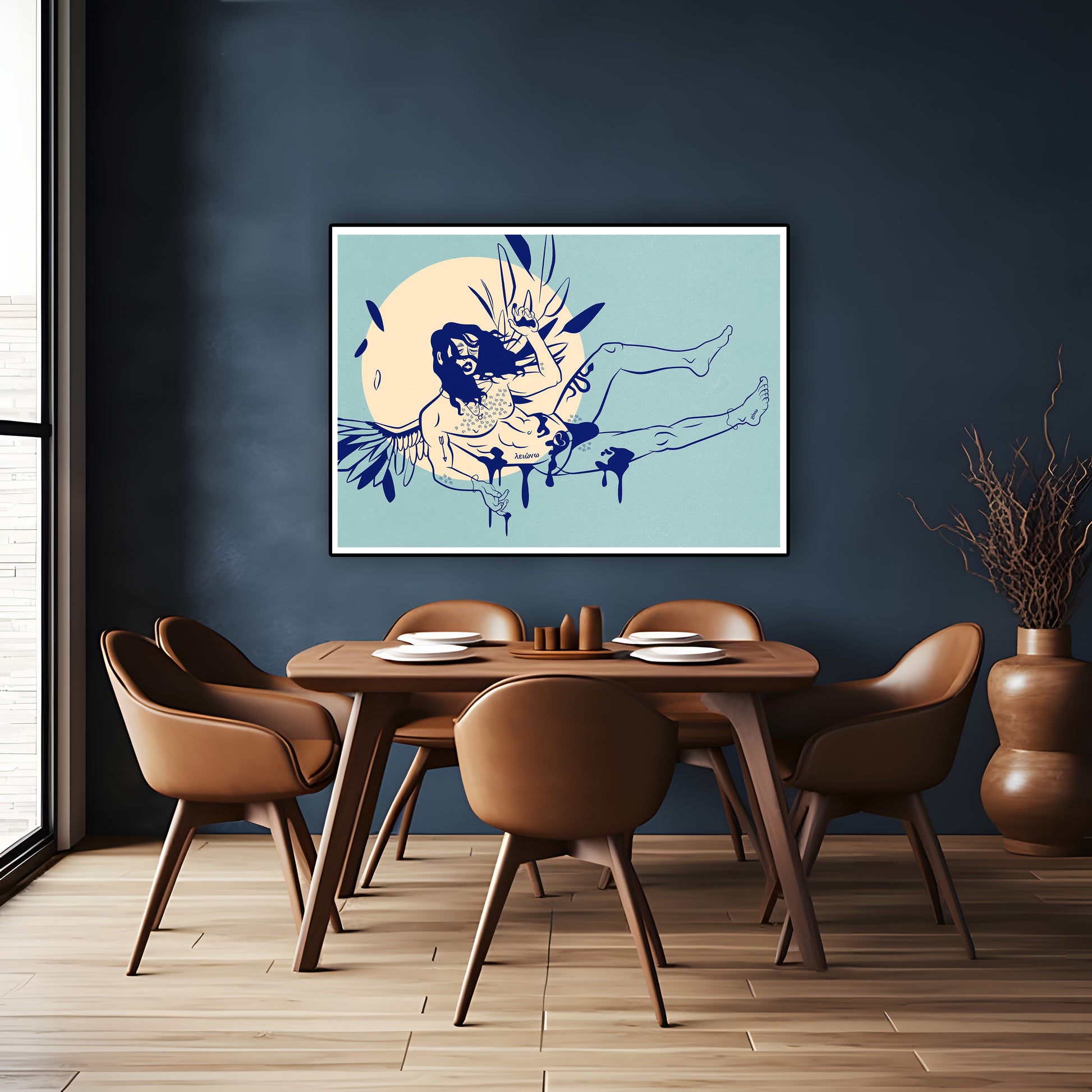 We offer two premium frame types: wooden and metal. All frames are professionally assembled and ready to hang.