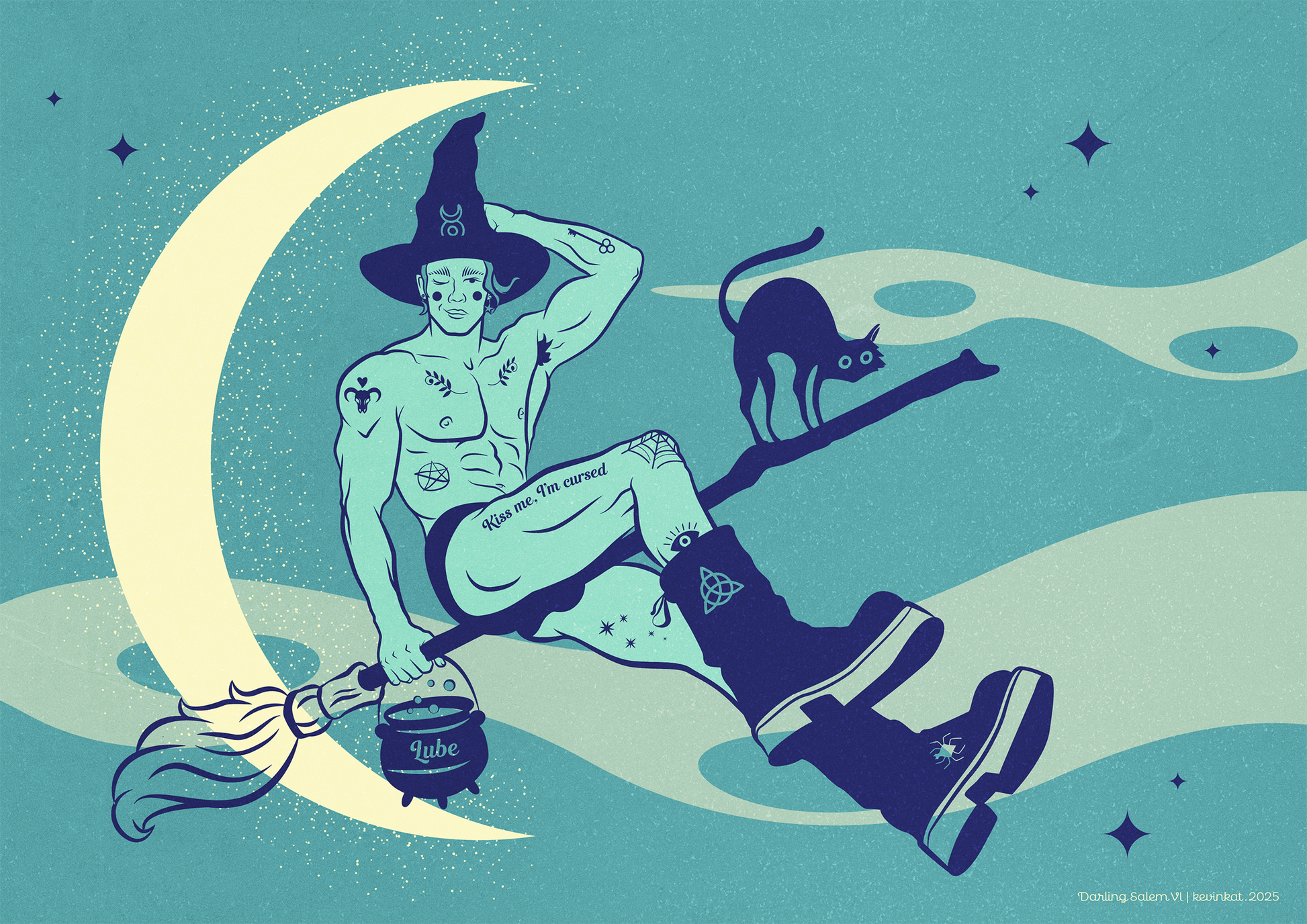 He’s the patron saint of midnight trouble-part hex, part heartthrob. Darling Salem doesn’t cast spells; he whispers them against collarbones. He smells like smoke, sweat, and something green. Every glance is an invitation and a warning. His kind of witchcraft isn’t in books - it’s in the way you say his name when you shouldn’t.
