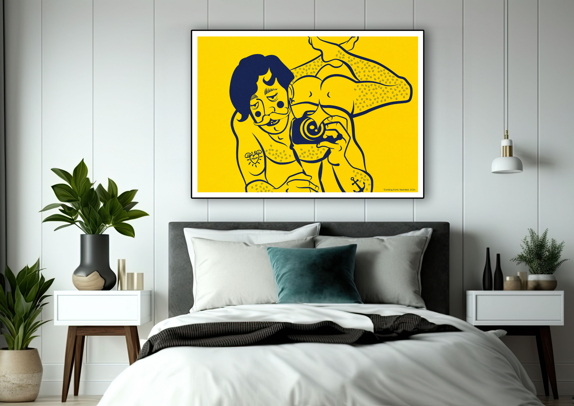 Serving sass and ass, Darling Scott is the unapologetic showstopper your walls have been begging for. Captured in full seductive glory, taking a mirror selfie with lube and poppers at the ready for a late-night booty call after the clubs. Legs in the air, and just the right amount of “oops,” this artwork doesn’t whisper, it shouts.