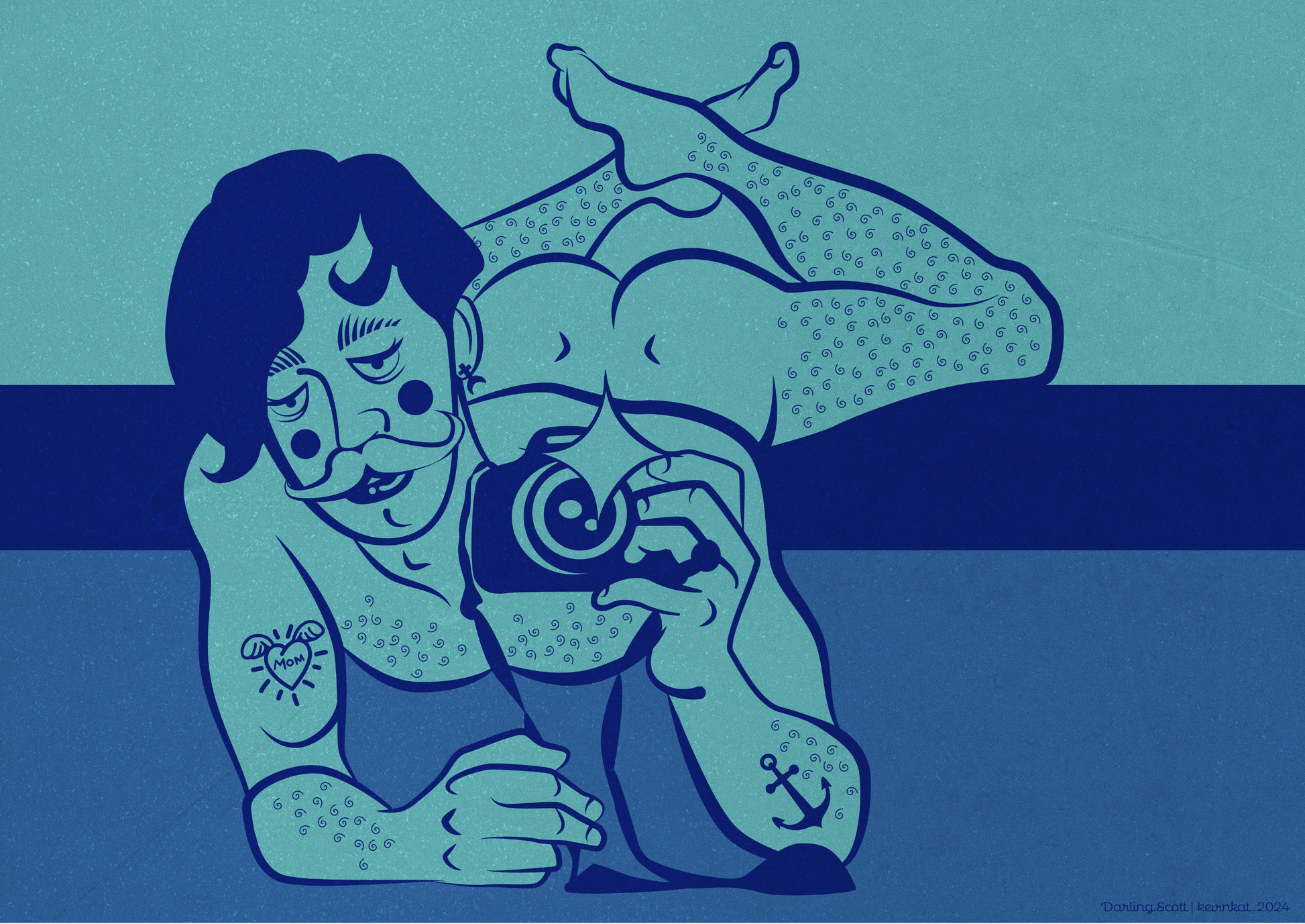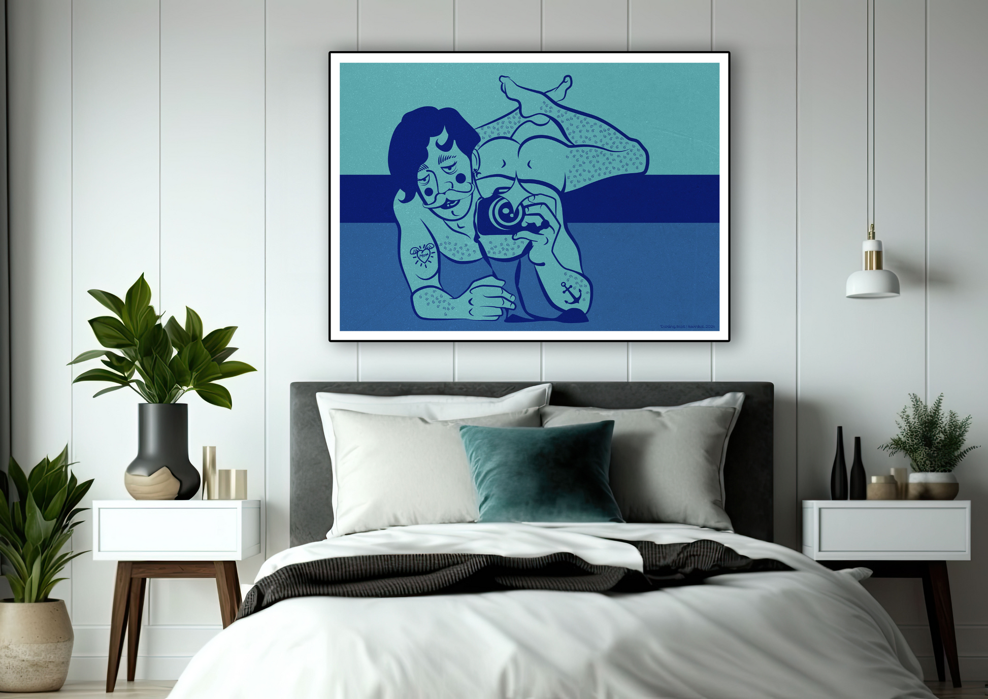 Serving sass and ass, Darling Scott is the unapologetic showstopper your walls have been begging for. Captured in full seductive glory, taking a mirror selfie with lube and poppers at the ready for a late-night booty call after the clubs. Legs in the air, and just the right amount of “oops,” this artwork doesn’t whisper, it shouts.