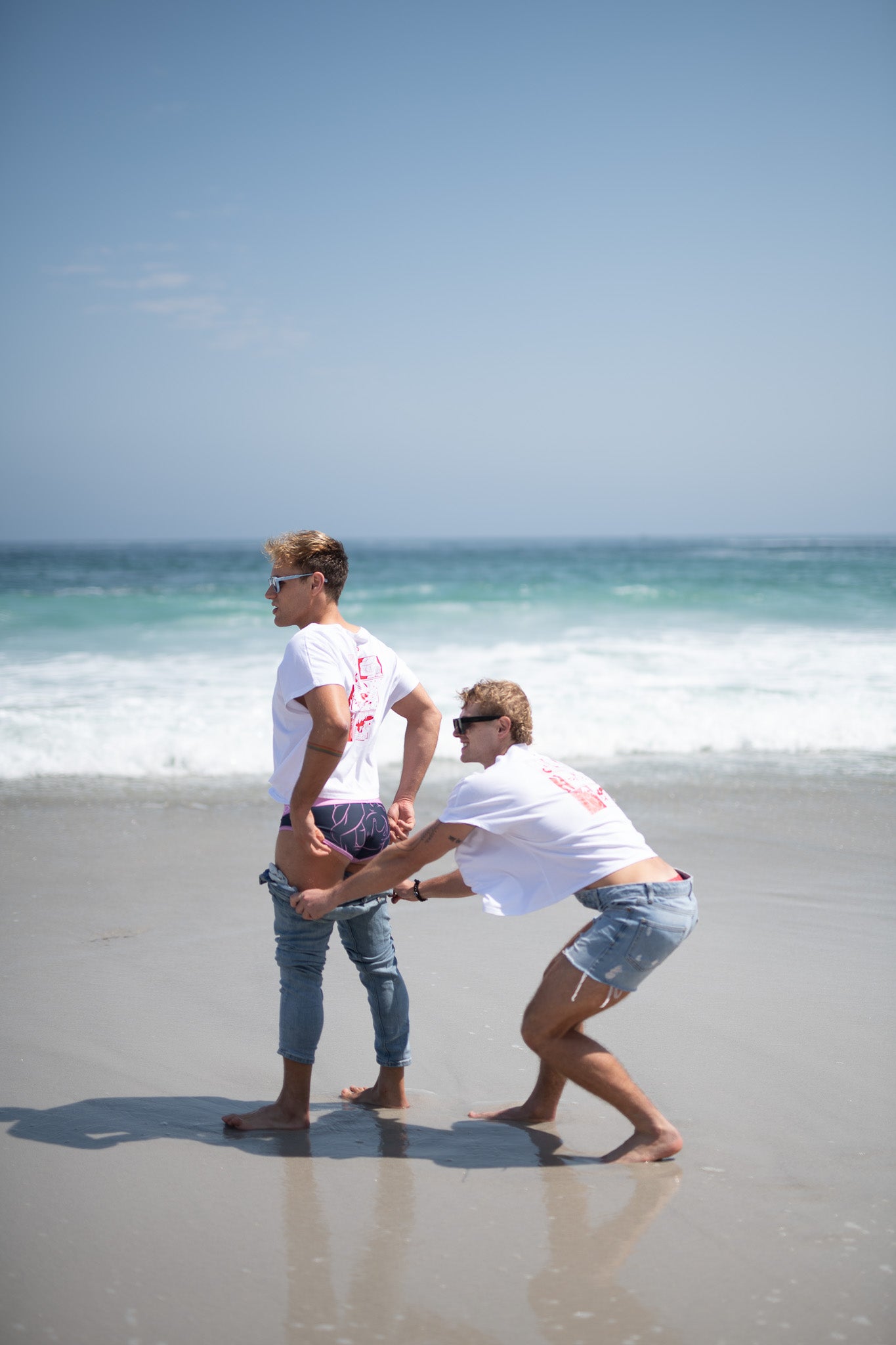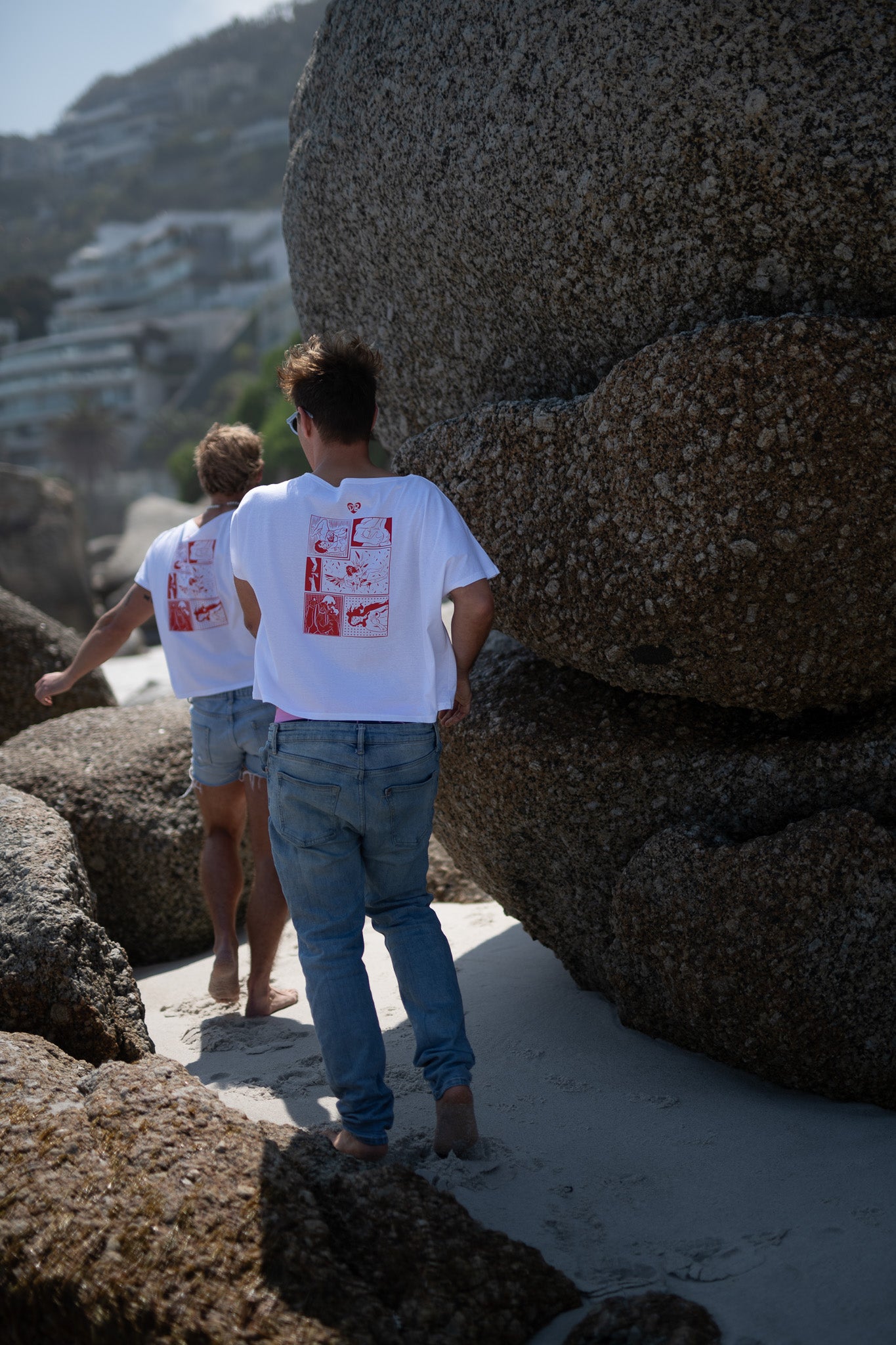 Mostly lies in the sand next to a towel, or on the floor next to a bed. The Box Crop features a collage of Darling Boys artwork - from David’s divine twist to Jocks’ sweaty close-up and Steve’s angelic thirst trap. Cropped fit, boxy energy, and ready to cause problems. This isn’t a top. It’s an altar perfect for beach days.
