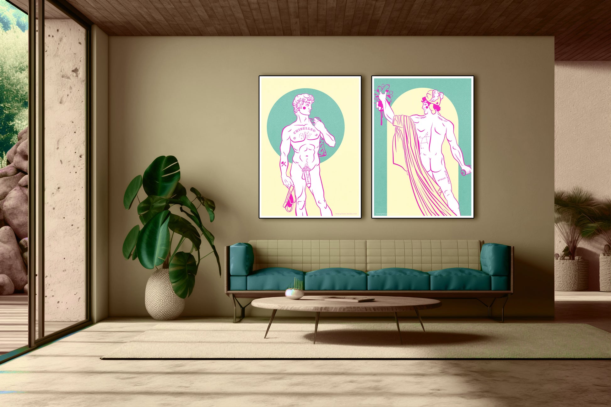 Darling David and Darling Perseus are the ultimate duo - two iconic figures from ancient lore, reimagined through a queer, camp, and wildly sexy lens. Think of them as the art-historical boyfriends you wish you had in high school.